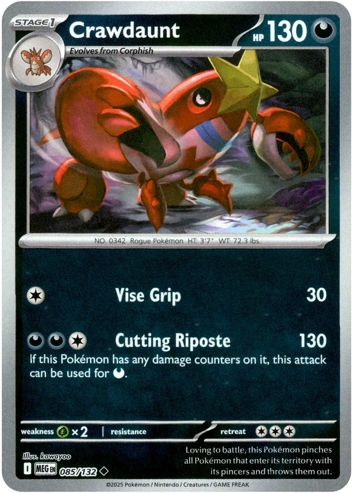 Crawdaunt 085/132 Mega Evolution Reverse Holo Uncommon Pokémon Card NEAR MINT TCG