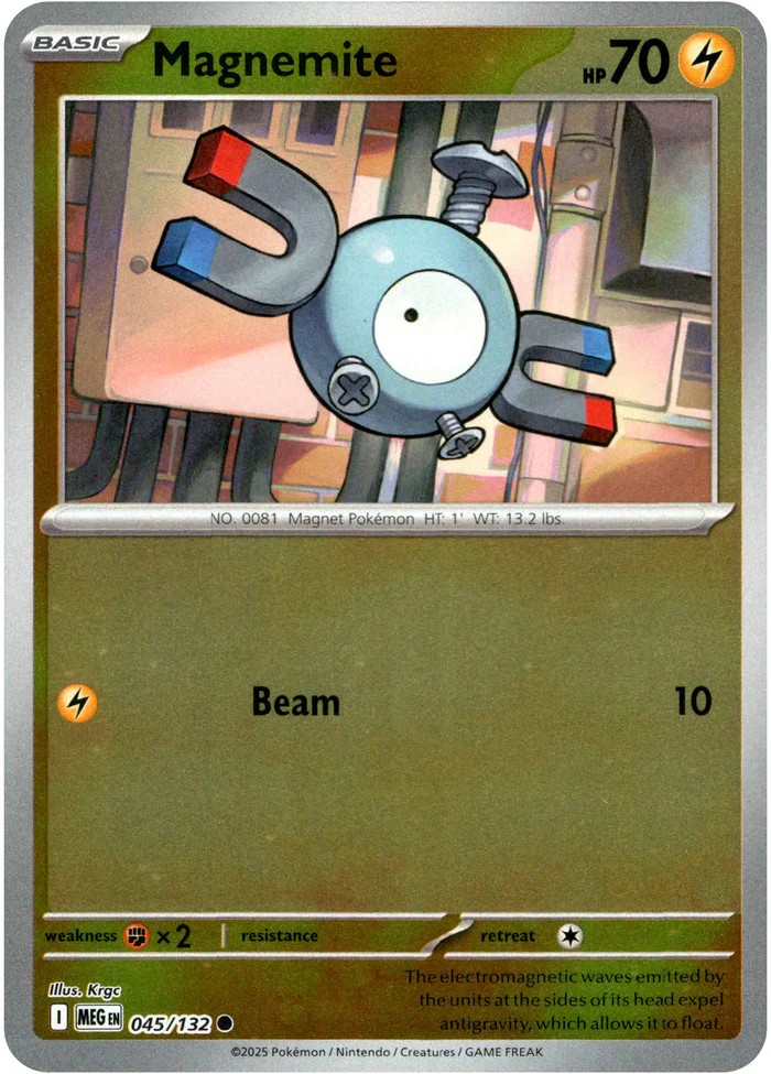 Magnemite 045/132 Mega Evolution Reverse Holo Common Pokémon Card NEAR MINT TCG